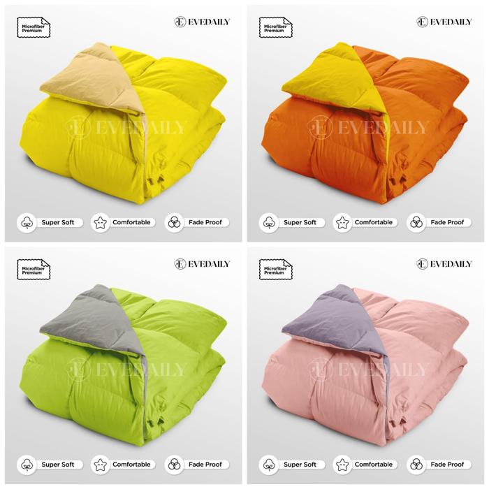 Selimut Lembut SELIMUT / BEDCOVER ONLY TANPA SPREI TWO TONE SERIES 1 - Plain Yellow Mix Plain Khaki, SINGLE 155X220