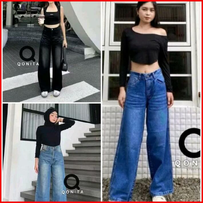 Celana Panjang Gombrong Baggy Jeans Whisker Jeans Loose Pants Tebal Panjang Nyaman Distro
