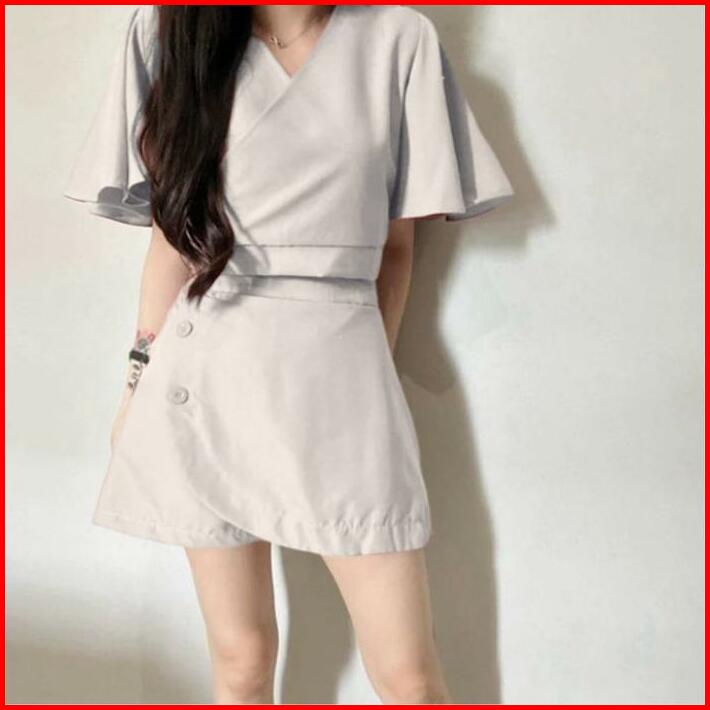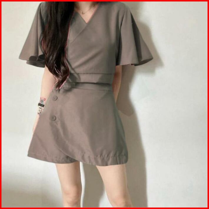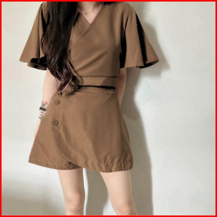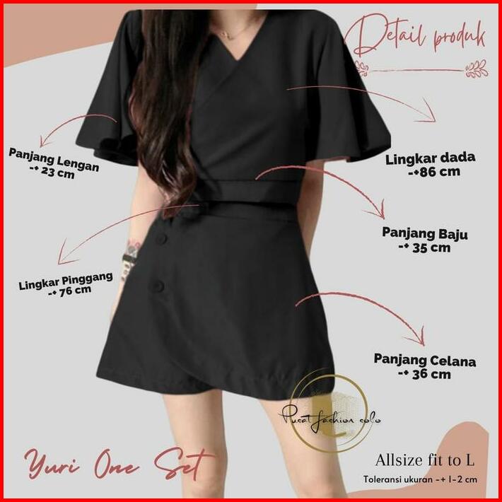 Yuri One Set Atasan Celana Rok Pendek Setelan Wanita Korean Style Kekinian Lengan Pendek Dan Rok Celana Pendek Set Look