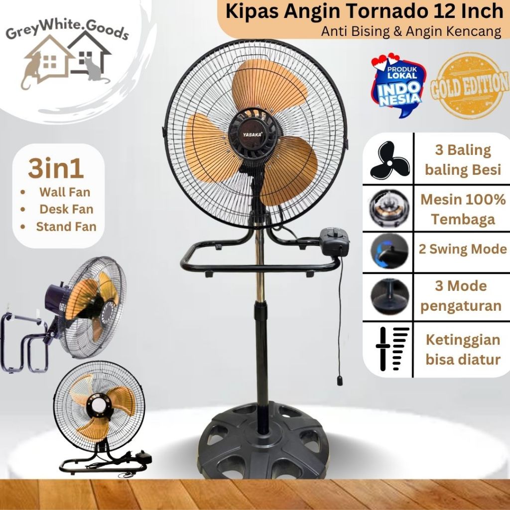 Kipas Angin Besi Tornado Fan 12” 3in1 Wall Fan Hemat Daya Kencang