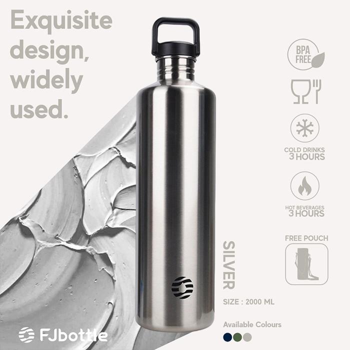 Botol Minum FJbottle - Botol Minum Olahraga Botol Stainless Steel 2 LiterJumbo Free Tas Botol - SILVER