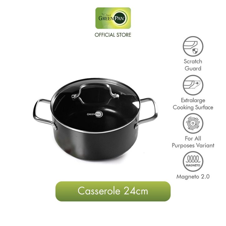 Panci Serbaguna GreenPan Copenhagen Black Covered Casserole 24 Cm Panci Non Toxic