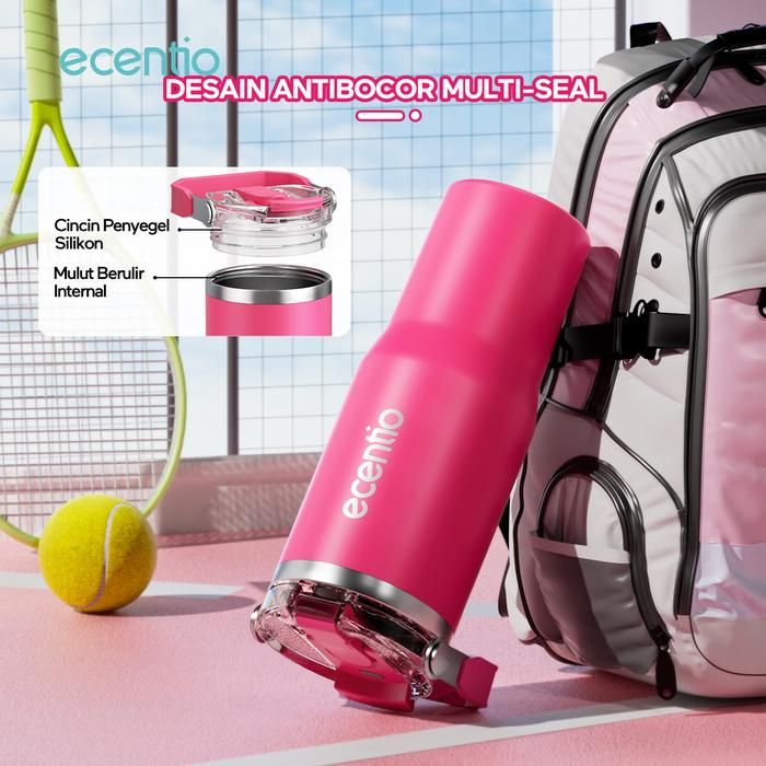 Botol Minum ecentio tumbler minum stainless premium botol minum aesthetic besar 900M1 - Merah Muda