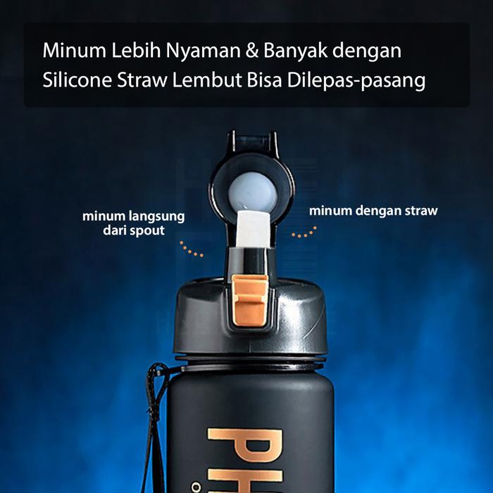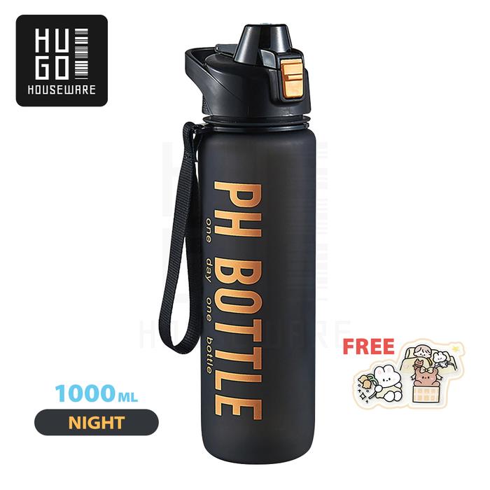 Botol Minum HUGO Botol Minum 1 Liter Premium Botol Air Minum Anak Sport Design Anti Bocor BPA FREE - Hitam Premium