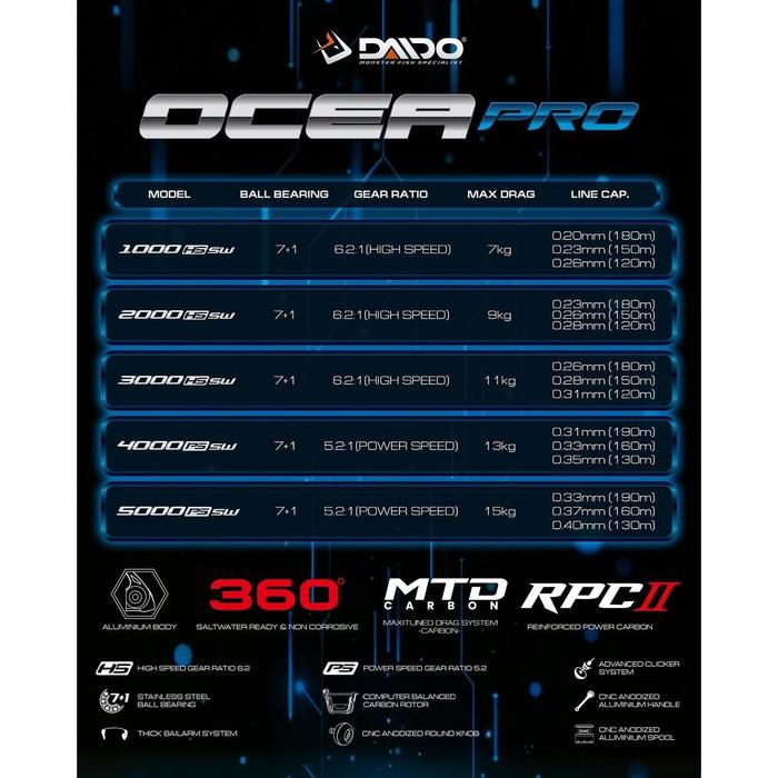REEL GULUNGAN PANCING REEL SPINNING - DAIDO OCEA PRO SW ALUMINIUM BODY