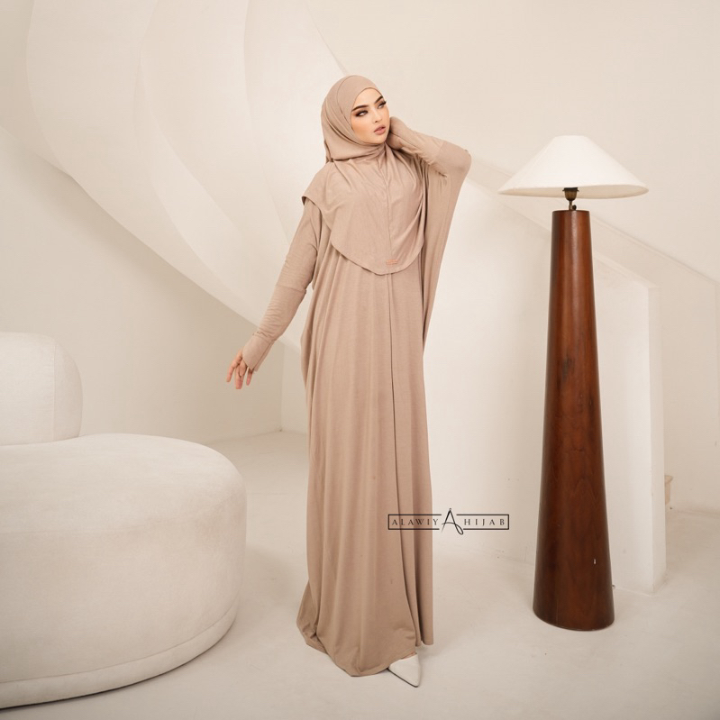 SET HELWA ABAYA - ALAWIYAHIJAB (SET HIJAB INSTANT GAMIS WUDHU & BUSUI FRIENDLY) GAMIS UMROH HAJI DRESS RAYON UMRAH ONE SET ABAYA SYAR'I