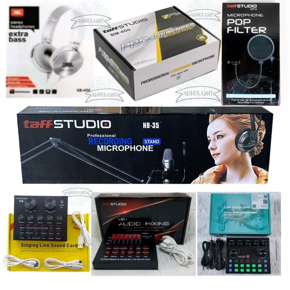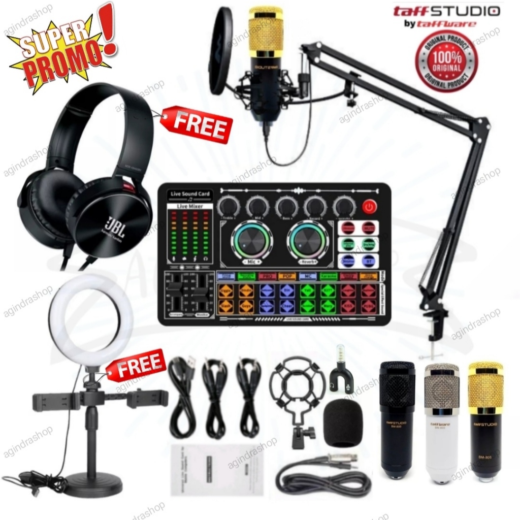 Paket Podcast & Live Streaming Komplit – BM800 Mic + V8 Soundcard + Ringlight & Headphone