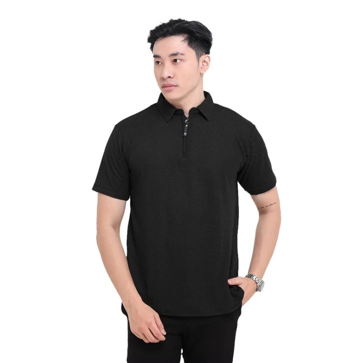 Kaos Polo Shirt Pria Kerah Lengan Pendek Zipper - Light Brown