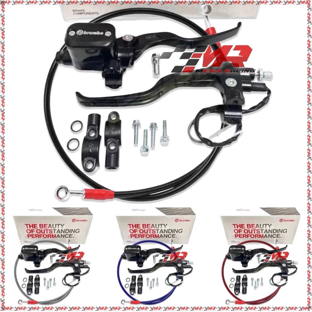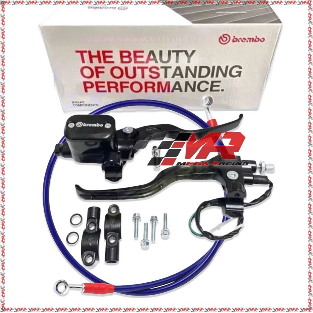 handle master rem sepasang model tabung kotak+ selang rem depan 95cm serat hitam semua motor