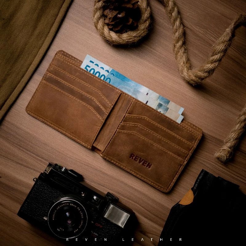 DOMPET KULIT PRIA REVEN LEATHER ARJUNA WALLET- DOMPET PENDEK LIPAT PRIA KULIT SAPI ASLI FREE DOMPET STNK