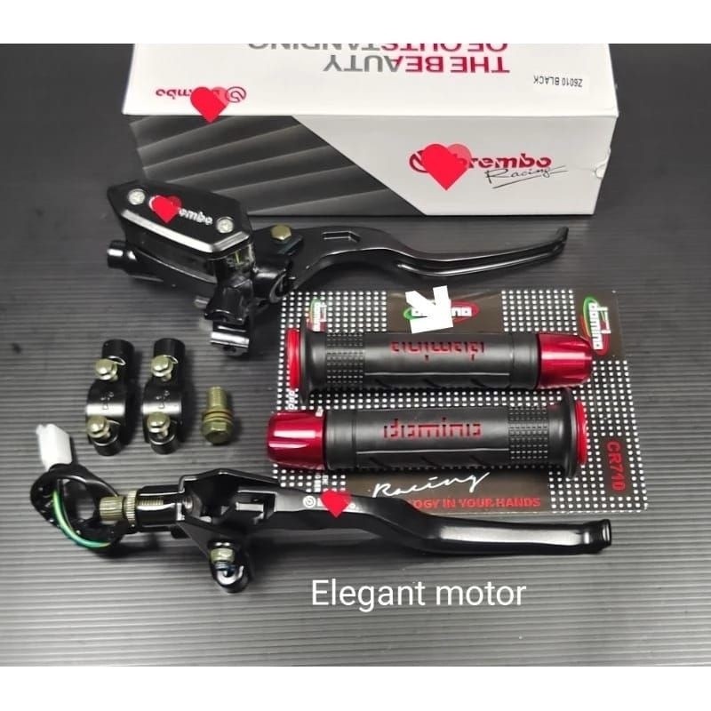 PAKET SET MASTER REM TIPE OVAL + HANDGRIP SISIK / GARIS + JALU STANG CNC UNIVERSAL [ SR ]