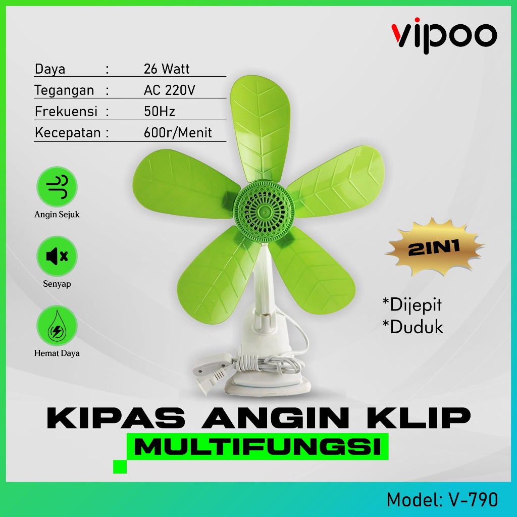 Kipas Angin Jepit dan Duduk 20 Watt 5 Baling Besar | Kipas Angin Jepit 20 Watt Type V-790 Vipoo Original