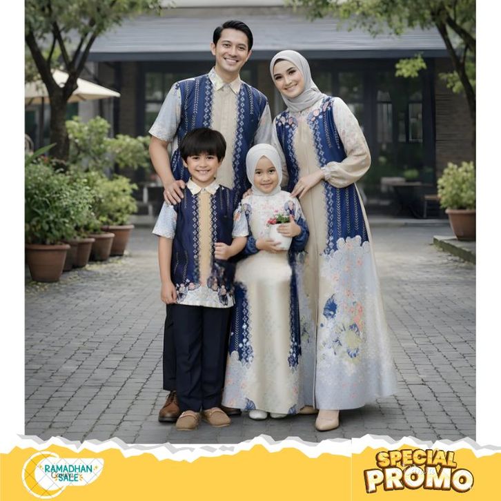 Baju Lebaran 2026 baju couple keluarga Gamis dan Kemeja Sarimbit Motif bahan Silk Premium Terbaru