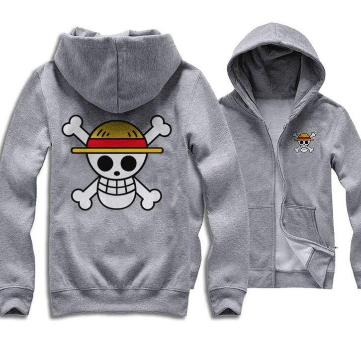 Jaket Hoodie Anime One Piece Tengkorak Original Harvional One Piece Hoodie Zipper Anime Size S-XXL Pria Wanita