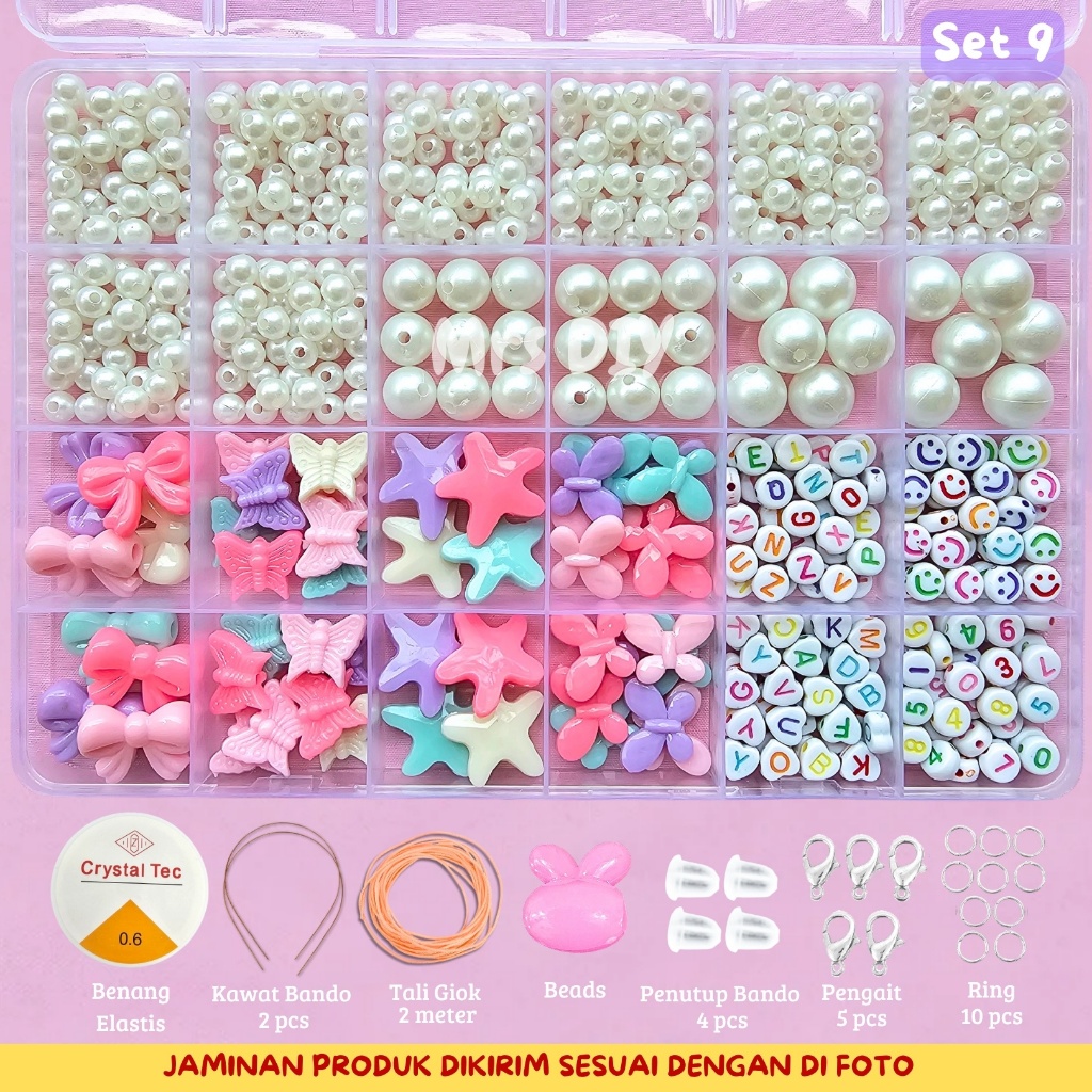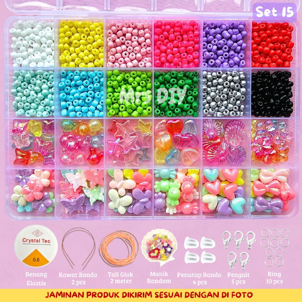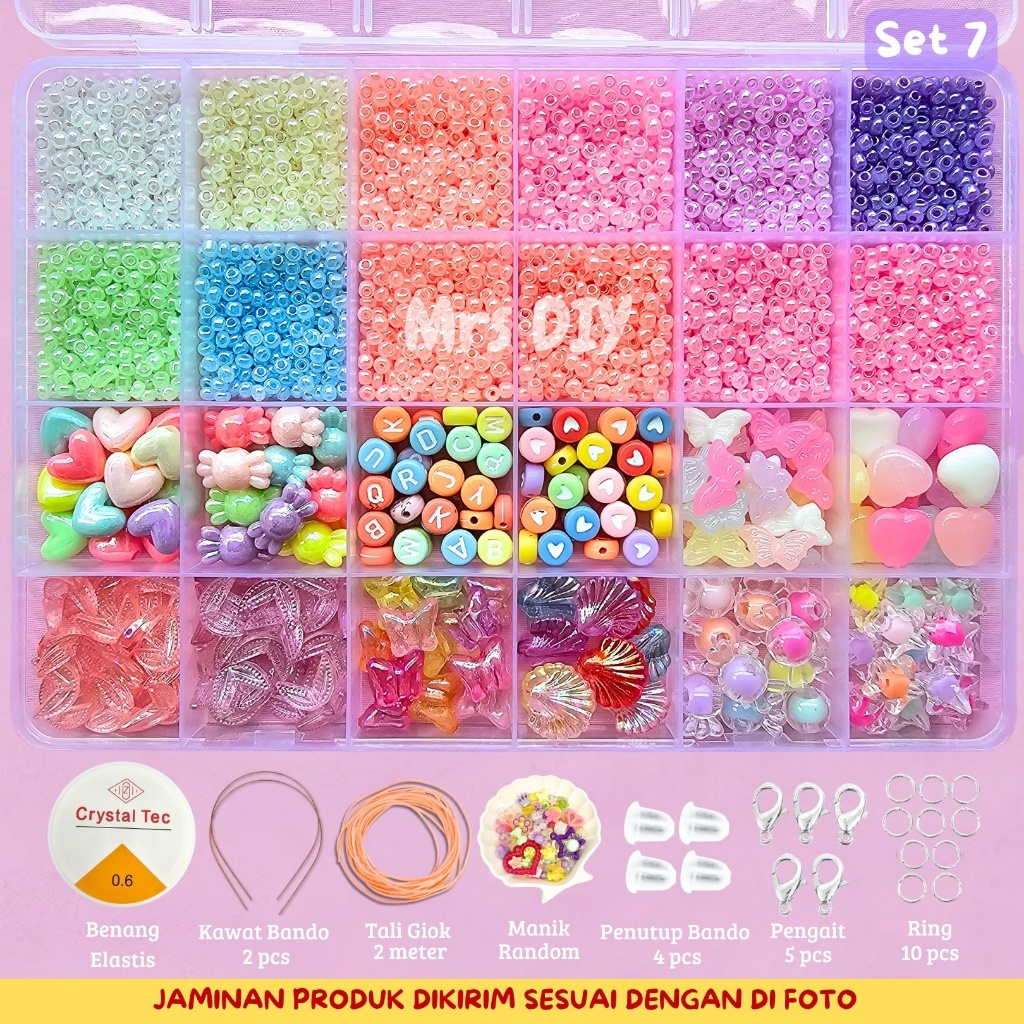 Mrs DIY - DIY Gelang Manik Manik Set Aesthethic - Mainan Edukasi Anak Perempuan - Meronce Mute Bahan Handmade Cincin Gel