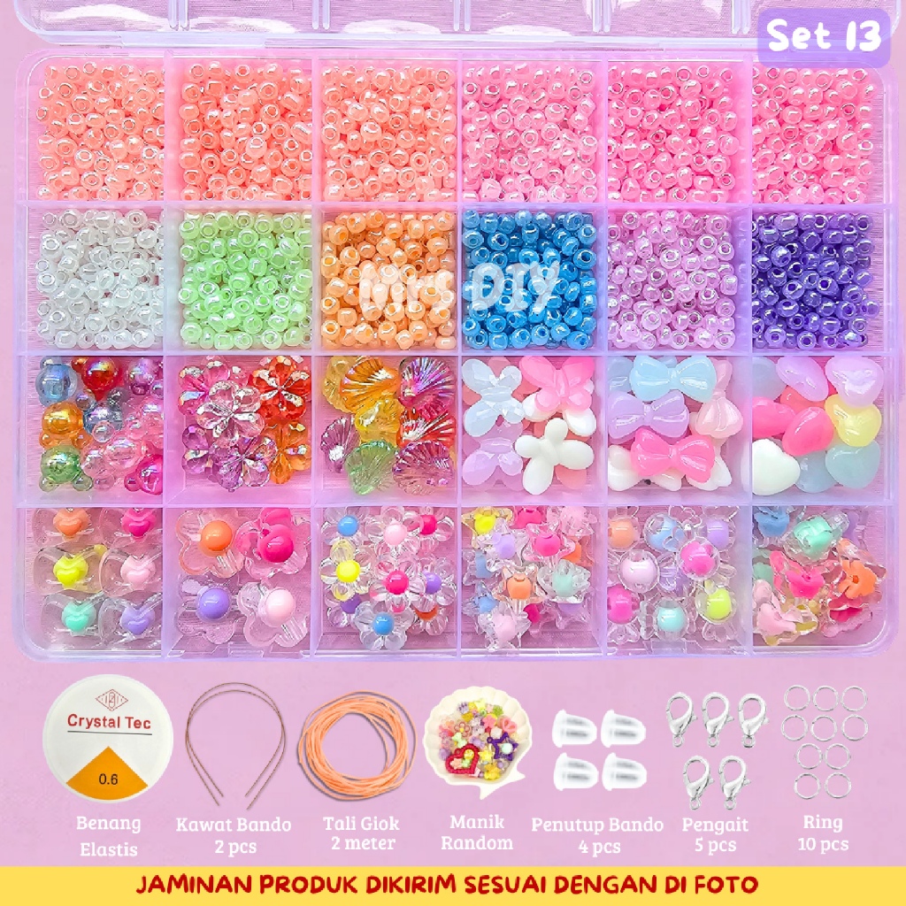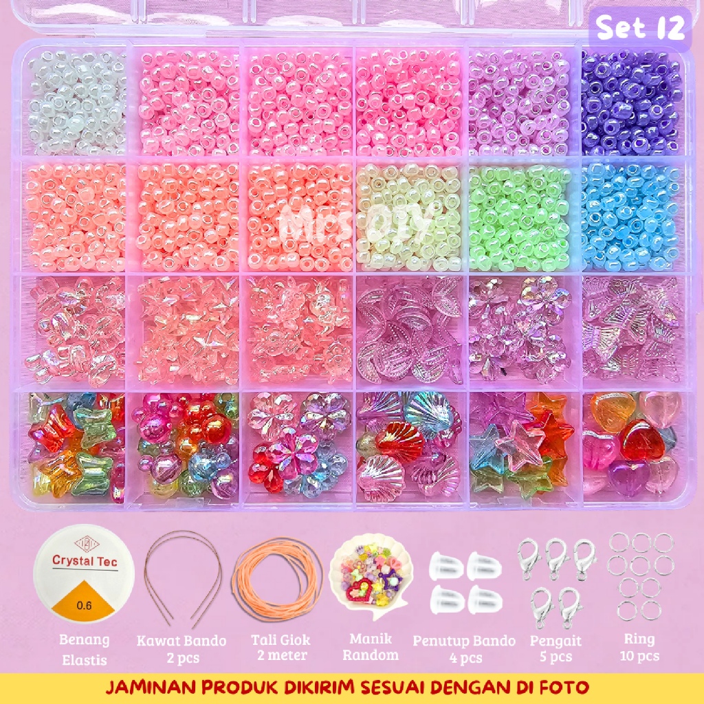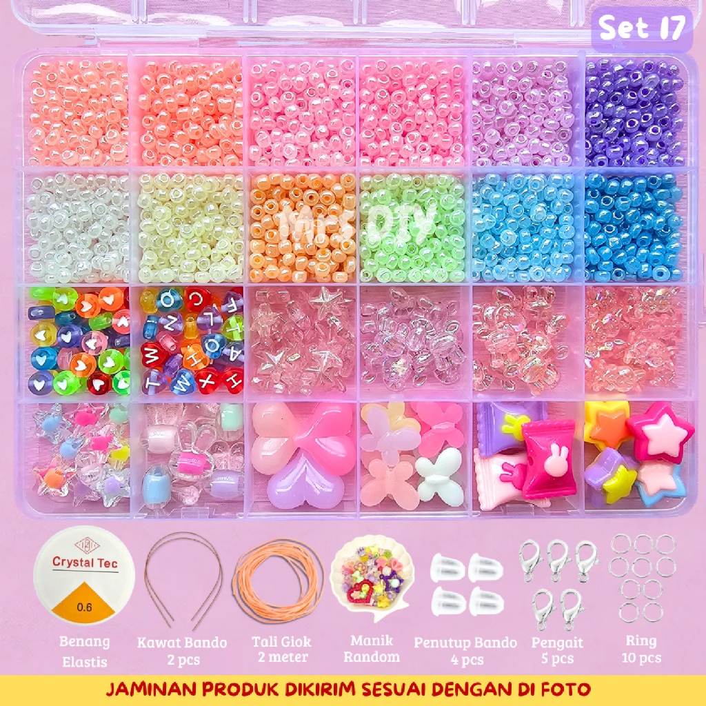 Mrs DIY - DIY Gelang Manik Manik Set Aesthethic - Mainan Edukasi Anak Perempuan - Meronce Mute Bahan Handmade Cincin Gel