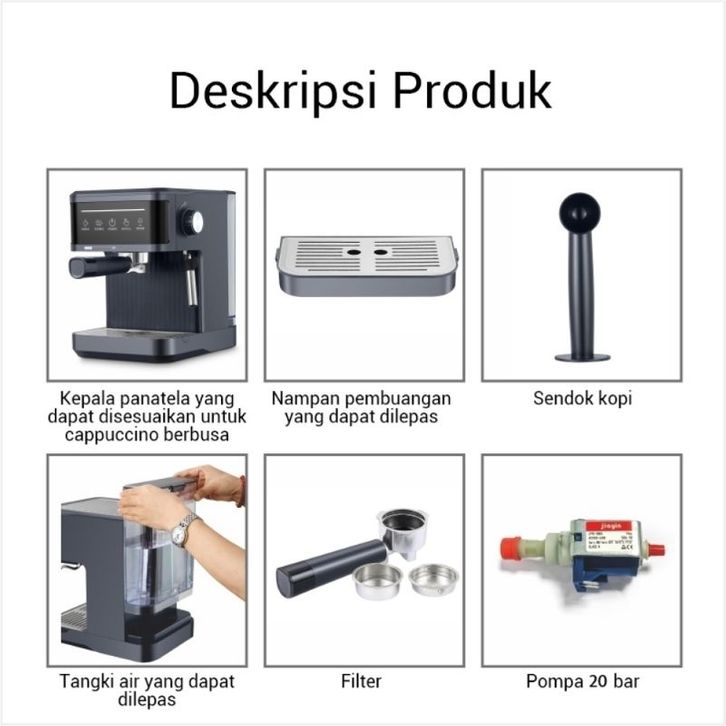 Mesin kopi espresso maker frothing 20 bar 850 watt 1,8 L