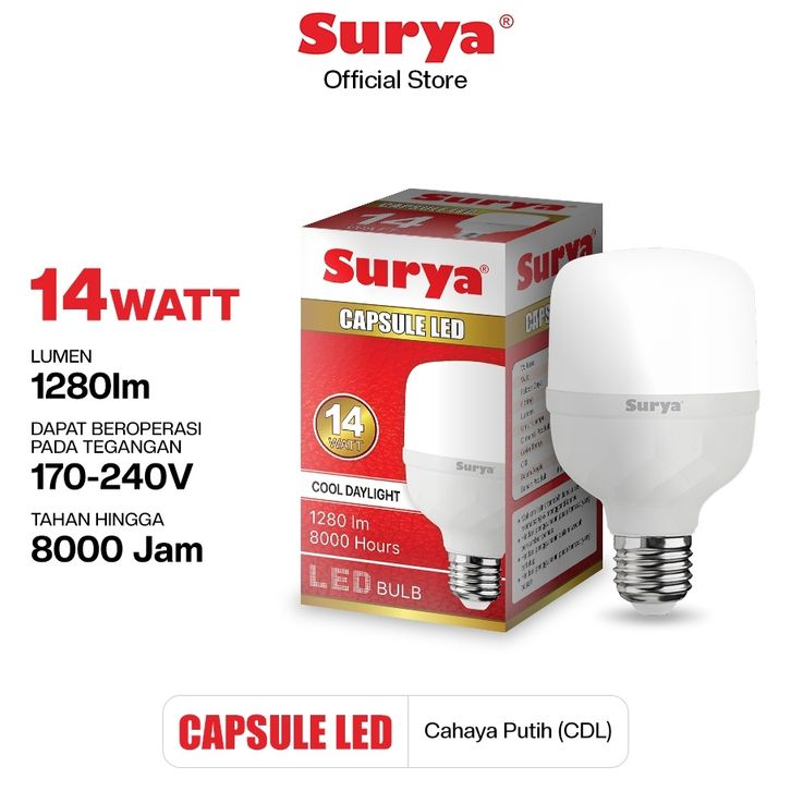 Surya Capsule Bohlam Lampu Led 6 9 14 18 28 36 42 50 Watt Cool White