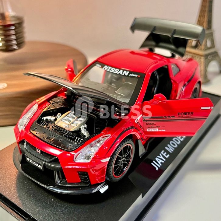 (TERDAPAT LAMPU & SUARA) Miniatur Diecast Mobil JDM NISSAN GTR skala 1/32 - Alloy Model Pajangan Mobil / hadiah mainan /