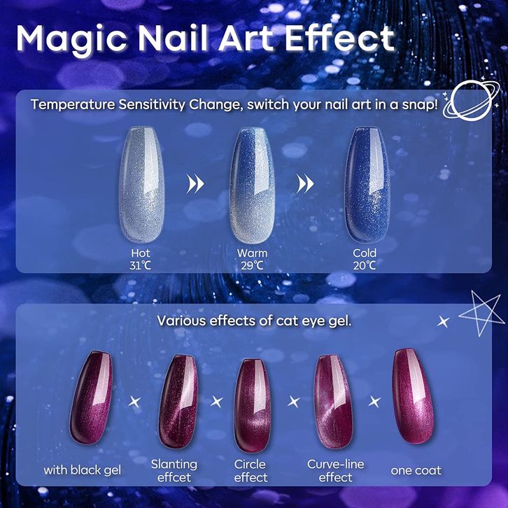 Promo Kutek M0Delones Glitter Gel Nail Polish Set 6 Warna, Color Changing Blue Cat Eye Magnetic Chameleon Sparkle Black