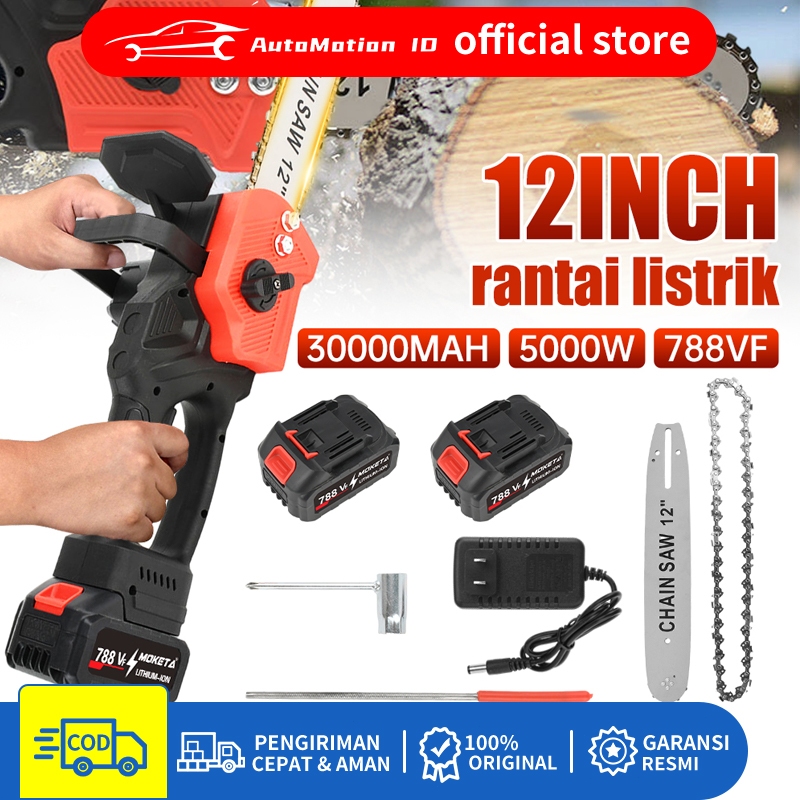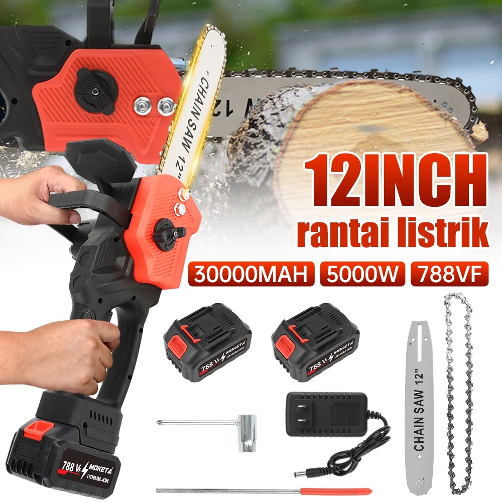 Chainsaw Gergaji Rantai Elektrik Mini 12 Inch 2 Baterai 788VF Cordless Gergaji Pemotong Kayu