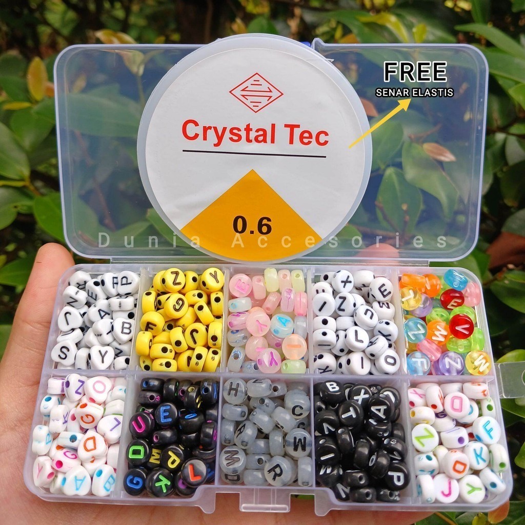 DIY Manik Manik Huruf Bulat Mix Set Box Free Senar Elastis Paket Aesthetic