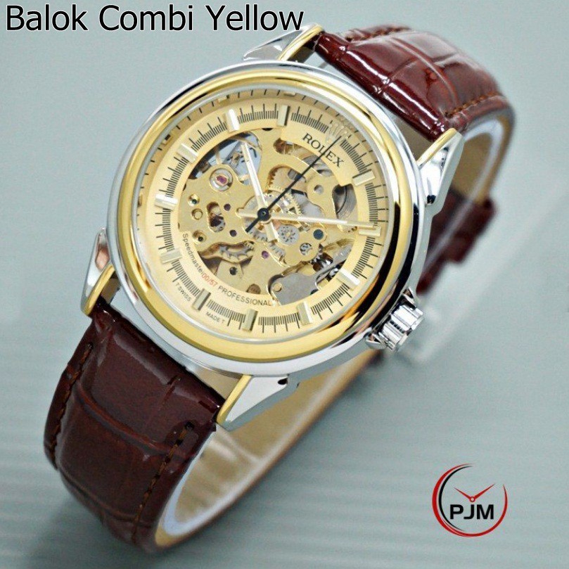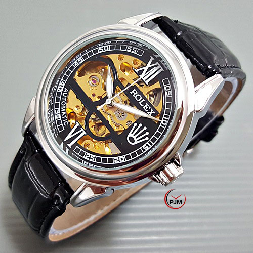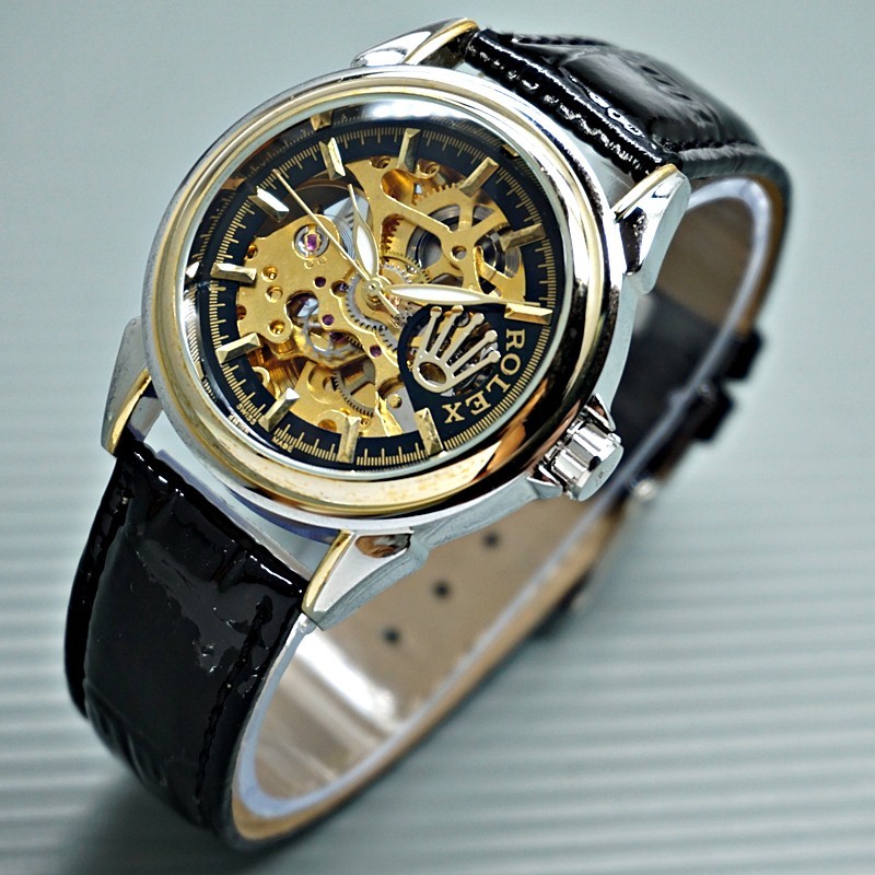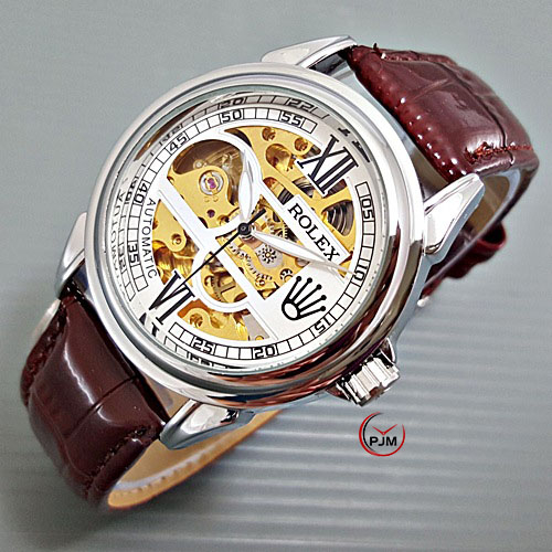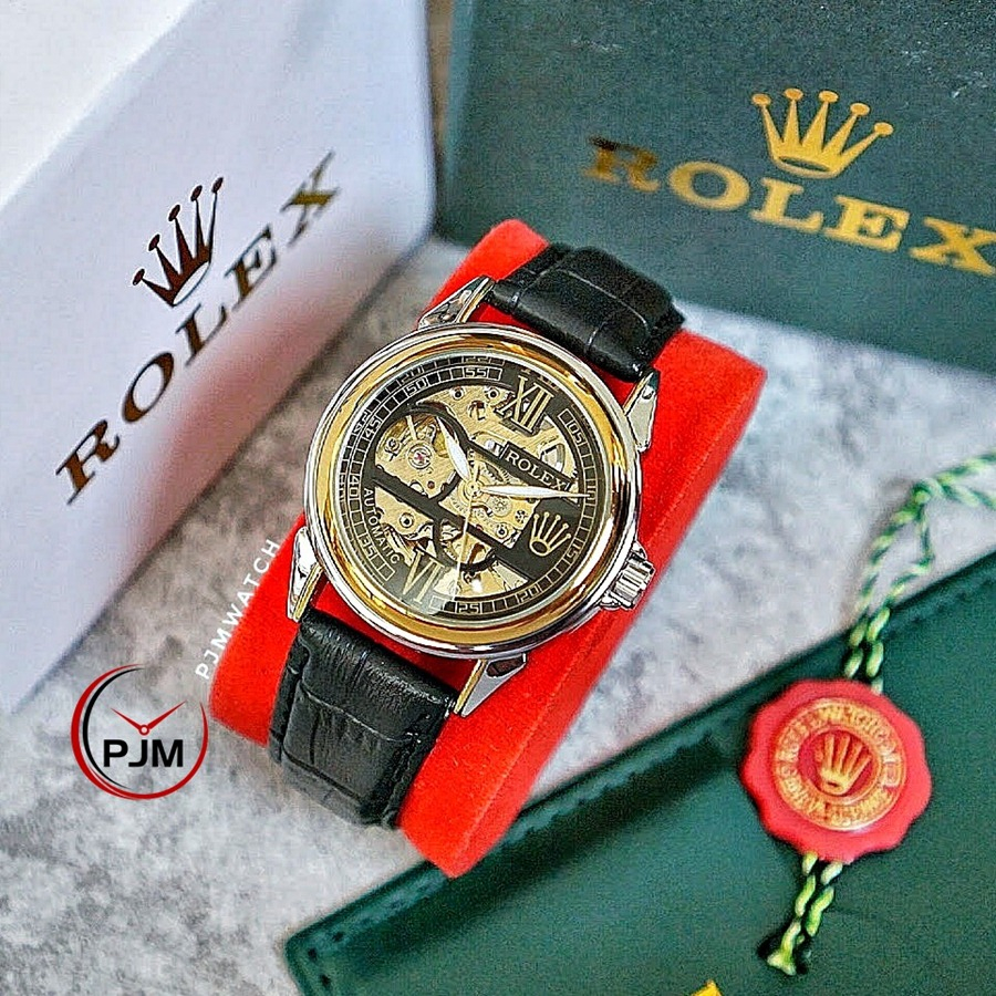 Jam Tangan Rolex Otomatis Tali Kulit Transparan | Automatic Matic Pria Best Seller