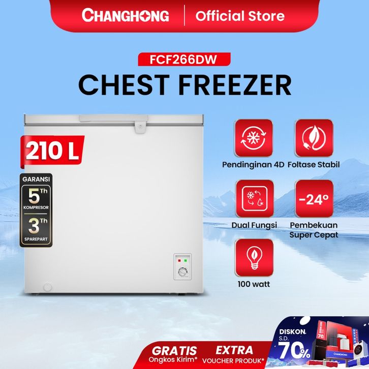 [Mall]Changong Chest Freezer Kapasitas 210 Liter - FCF266DW White