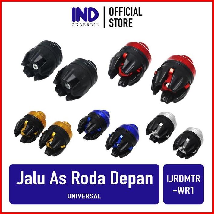 Ind Onderdil Jalu As Roda Depan Buah Naga Besar Cnc Universal Merah-biru- -hitam-2tone-silver 2pc