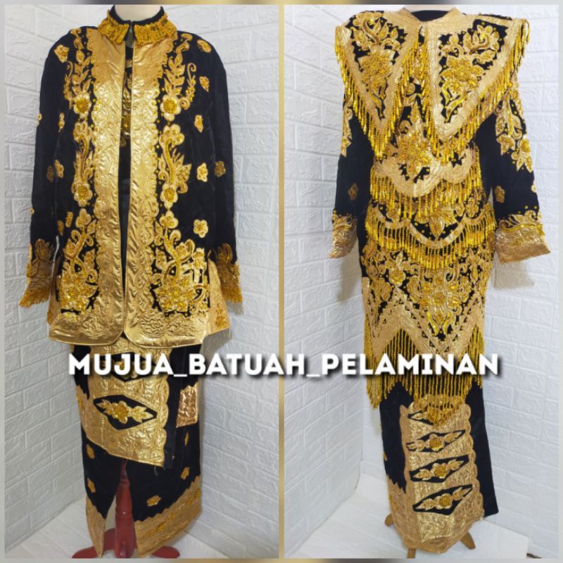 Baju Penganten Adat Padang Minang Beludru Warna Hitam Sepasang