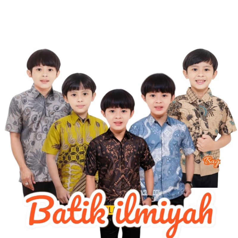 Kemeja Batik Anak Laki Laki Usia 1 2 3 4 5 6 7 8 9 10 11 12 13 tahun Motif Terbaru Warna Hitam Coklat Biru Denim Abu Kuning