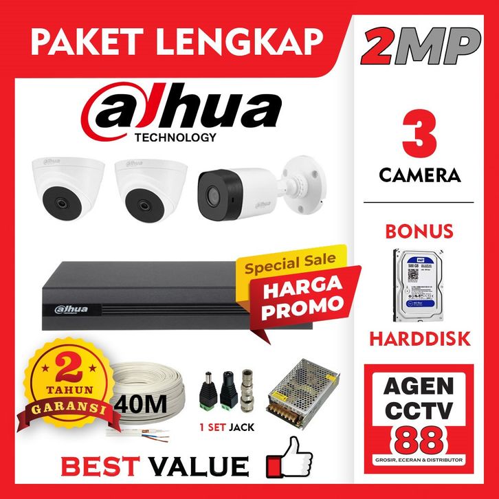 Paket CCTV DAHUA 3 Channel 3CH Kamera Full HD 2MP Komplit Lengkap