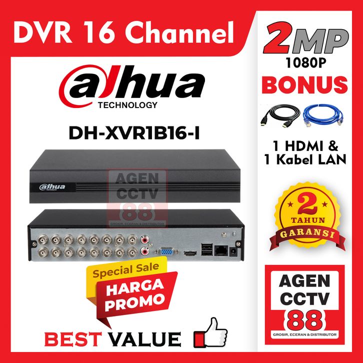 DVR DAHUA 16 Channel 16CH 2MP DH-XVR1B16-I 1080p Bonus Kabel HDTV & LAN