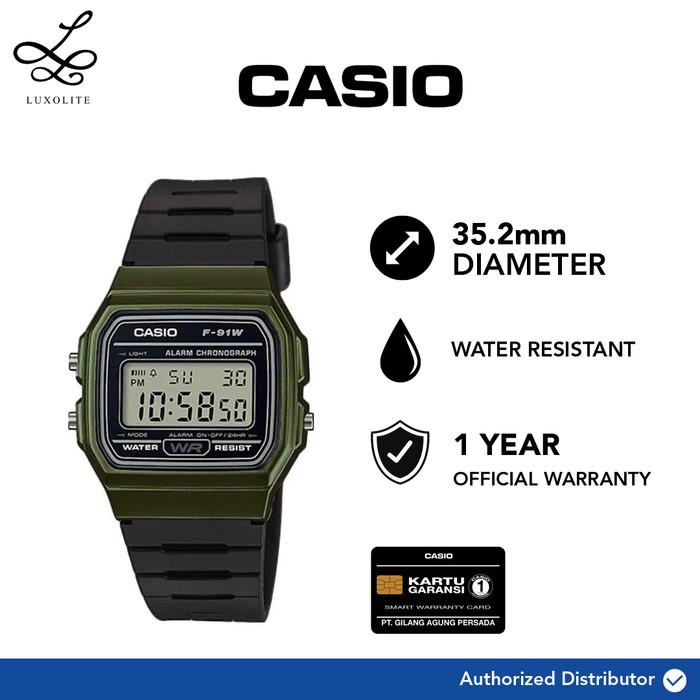 Luxolite Jam Tangan Pria Casio Digital Basic Army Dial F-91WM-3ADF F-91WM-3A