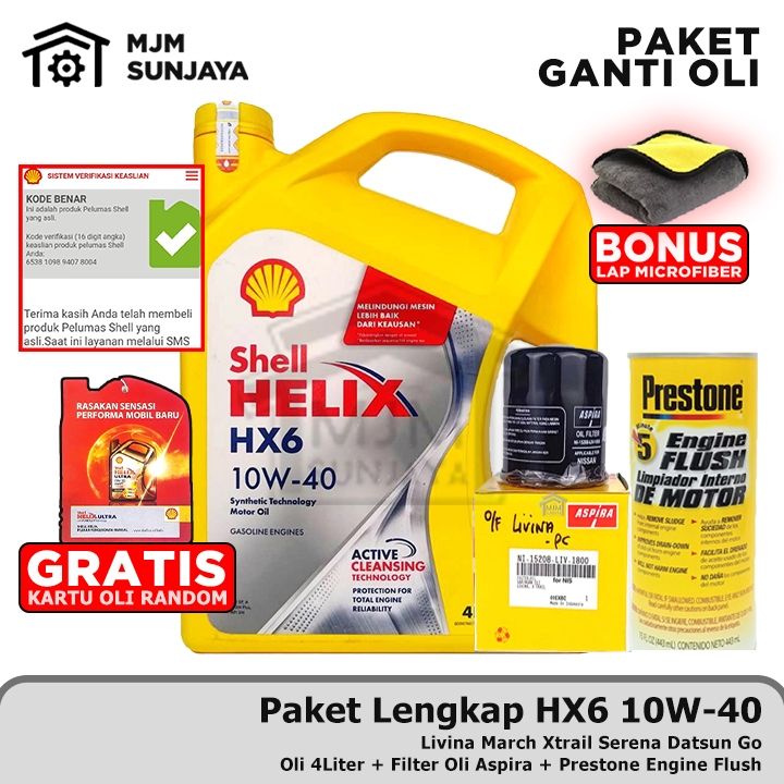 Oli Motor GRATIS FILTER OLI PAKET LENGKAP Ganti Oli Mesin Shell Helix HX6 SAE 10W-40 4 Liter Engine Flush ASPIRA Nissan