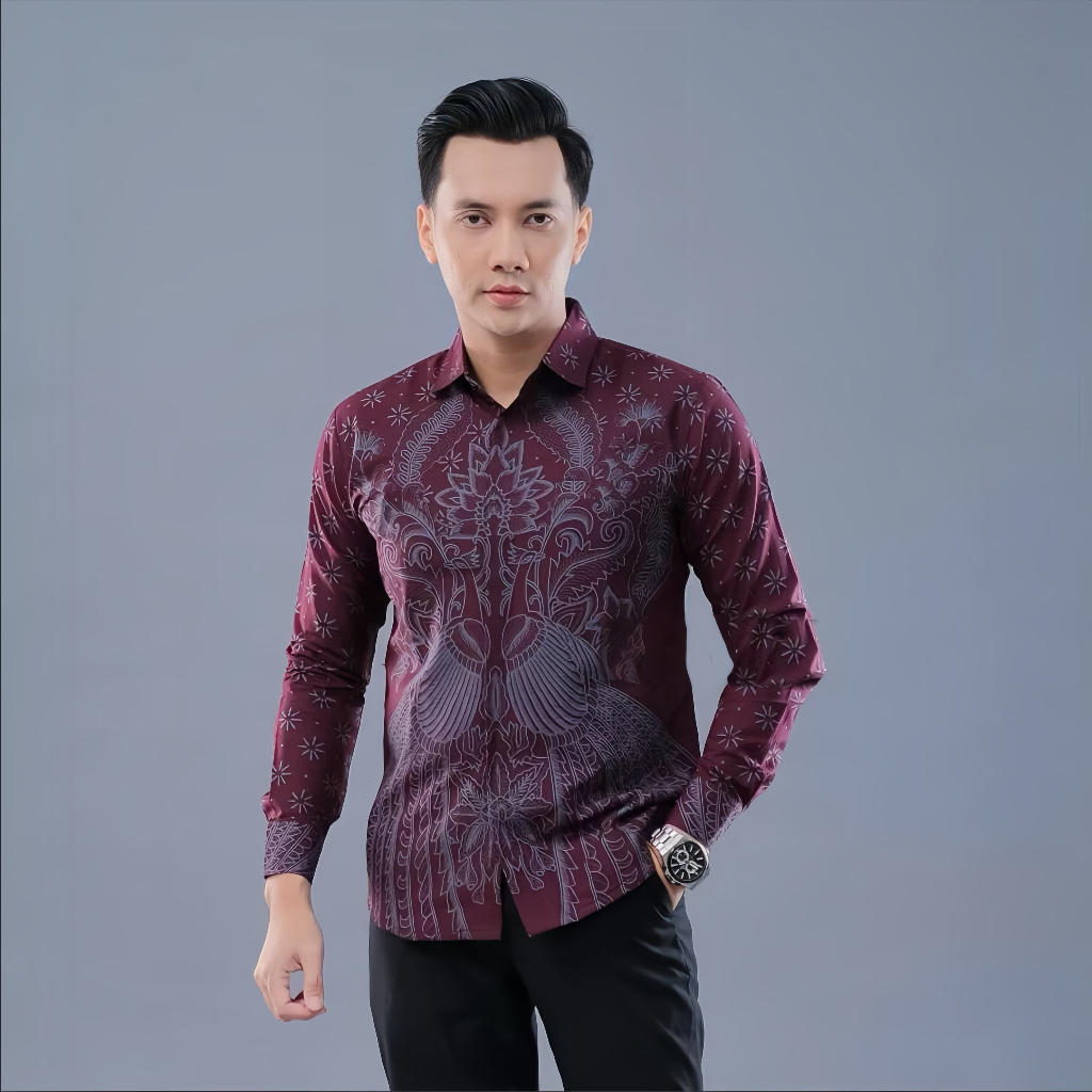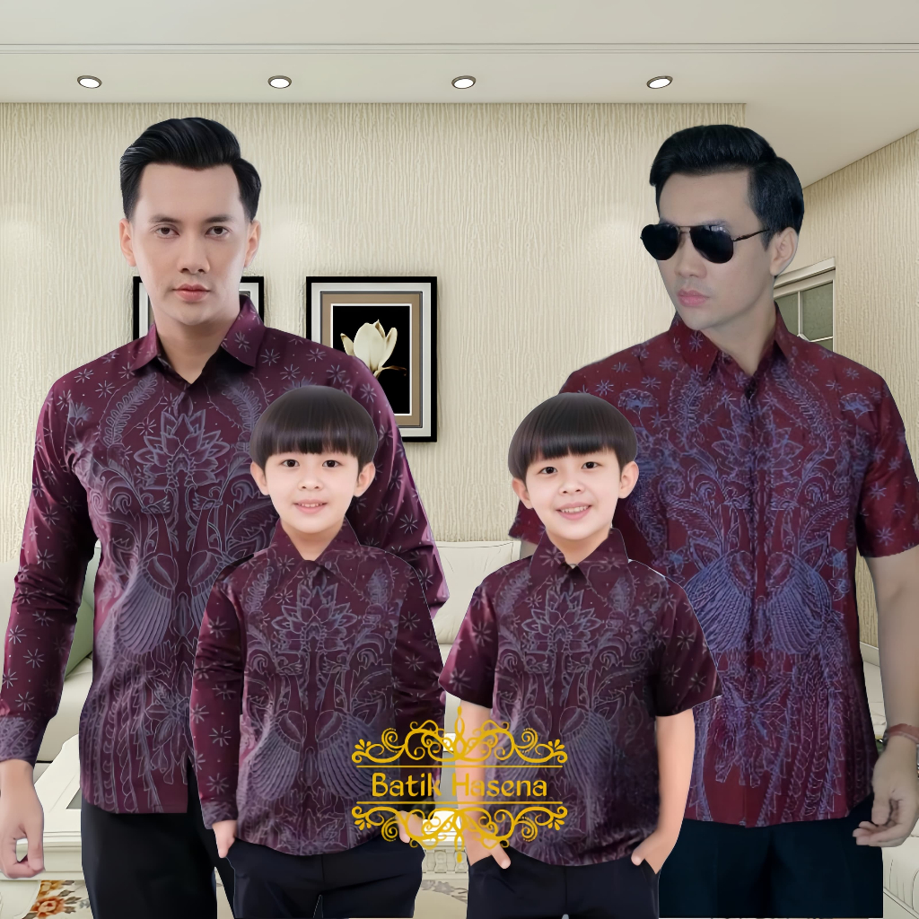 Baju Batik Couple Anak Bapak Terbaru Burgundy Bahan Katun Adem Nyaman