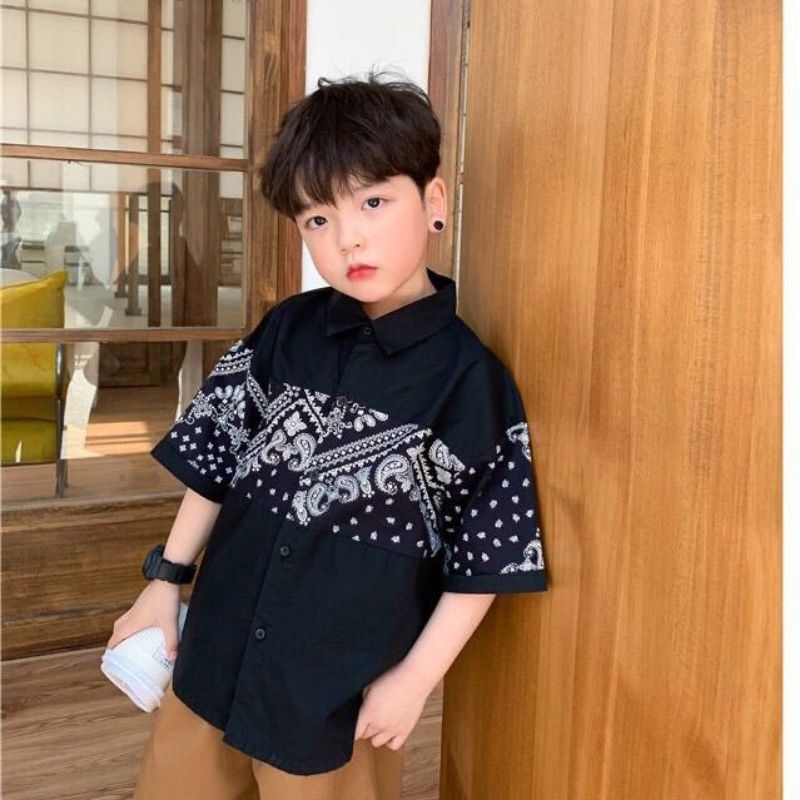 LCS235 Atasan kemeja batik anak laki laki lengan pendek / baju anak tanggung