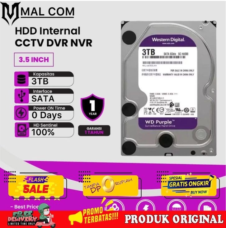 Hardisk 3TB / 2TB / 1TB / 500GB WD Purple SATA 3.5" Hardisk CCTV 3TB - 500GB WD