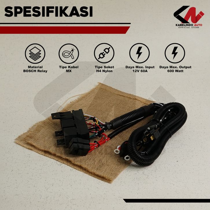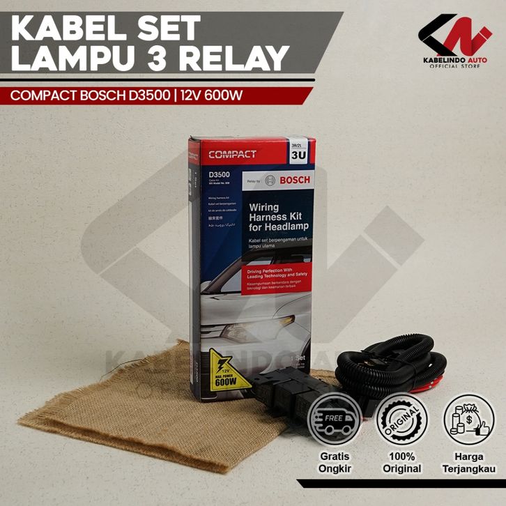 Kabel Relay Set Lampu H4 Mobil BOSCH D3500 3 Relay 12v Untuk 2 Lampu Utama Mobil Universal
