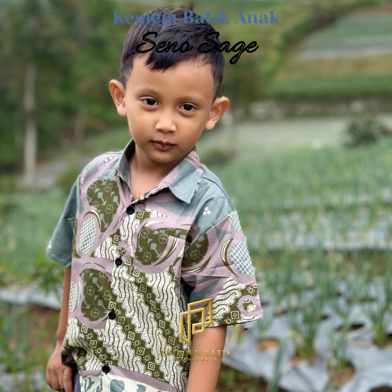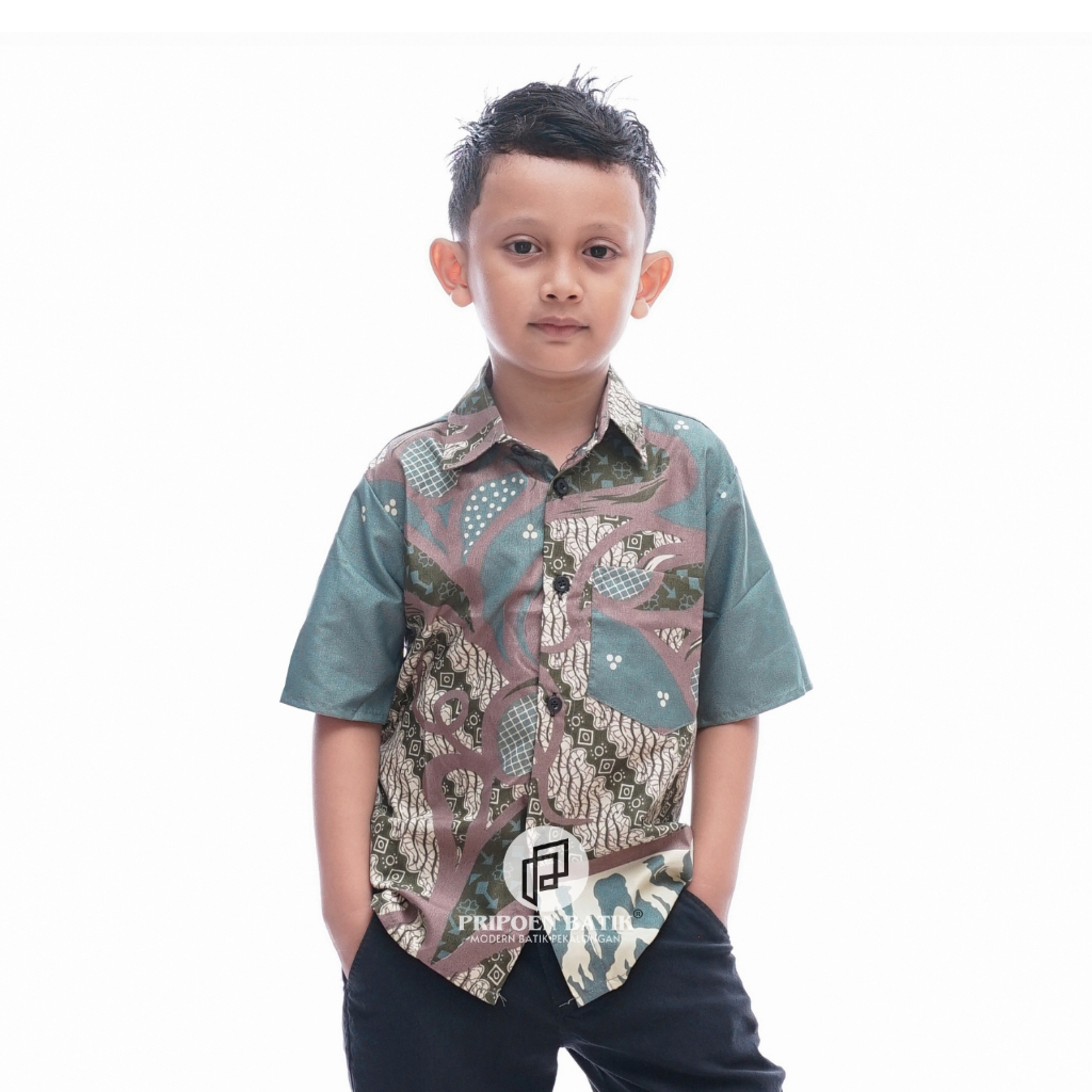 PRIPOEN BATIK kemeja batik anak umur 2-12 tahun warna sage cocok buat kesekolah
