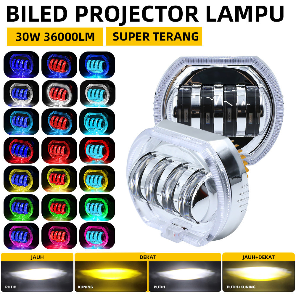 Lampu Biled Tembak LED Projie Biled + Shroud 4.5inc 8D 4 Lensa Dengan Devil Eye Original Super Terang High Low 30Watt