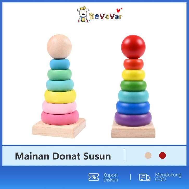 TERMURAH BEVAVAR Mainan Anak Ring / Balok Susun Anak Rainbow Tower Kayu ubobr