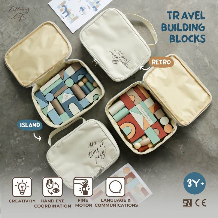 TERMURAH Lettering and Life Travel Building Blocks - Mainan Kayu Edukasi Balok - Open Ended Toy - Educational