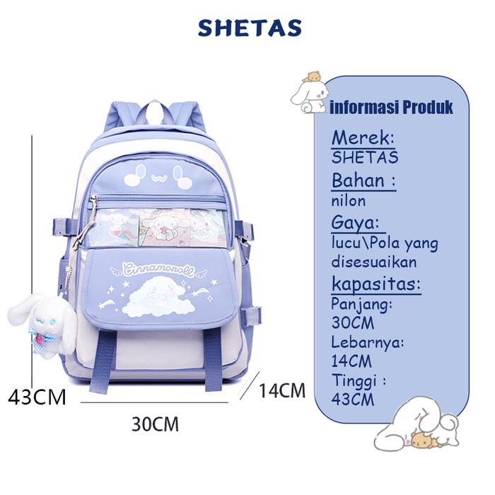 SHETAS Tas kuromi/Tas Sekolah Cinnamoroll Kapasitas Besar/Tas Sekolah Anime/Tas KuromiRansel