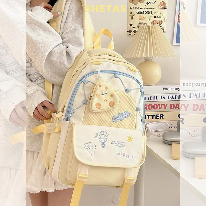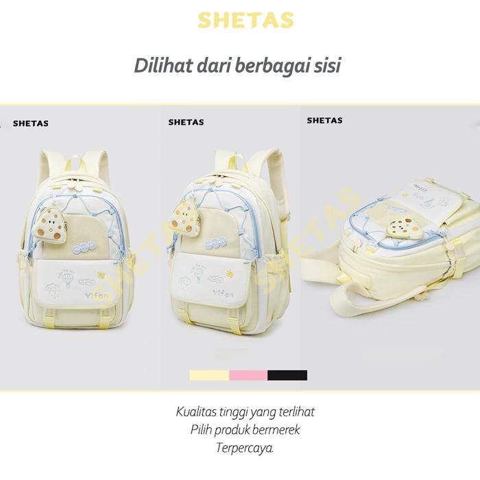SHETAS Tas Ransel Anak Sekolah Cewek Cowok Multifungsi Motif Bordir Warna-Warni New Arrival
