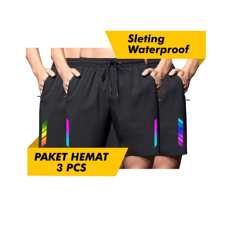 Grosir Celana pendek Paket Hemat 3 Pcs & 4 pcs Celana Pendek Running Olahraga Gym Pria Wanita Saku Sleting Waterproof E