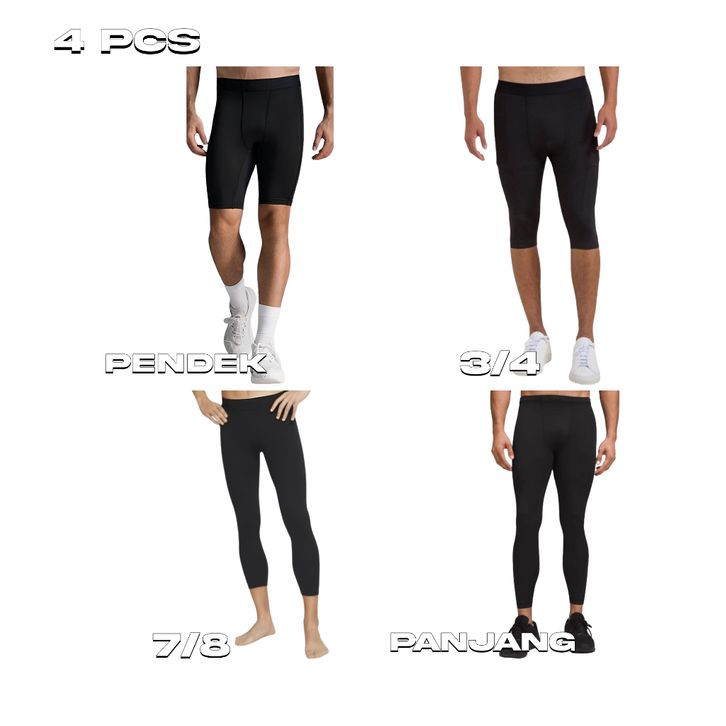 Terlaris 4Pcs Celana Baselayer Pria Wanita Legging Olahraga Running Gym Fitness Futsal Voli Triathlon Keren