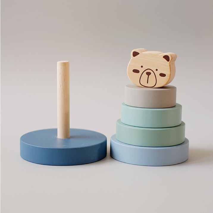 TERLAKU Lettering and Life Colorful Bear Ring Stacker Wooden Toys – Stacking Toy Stacking Ring Educational Toy –