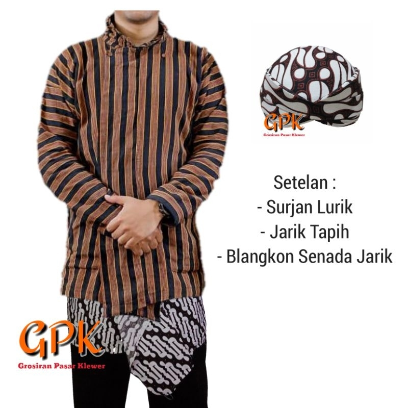 Setelan Baju Surjan Lurik Dewasa + Jarik Tapih Sembongan + Blangkon Senada