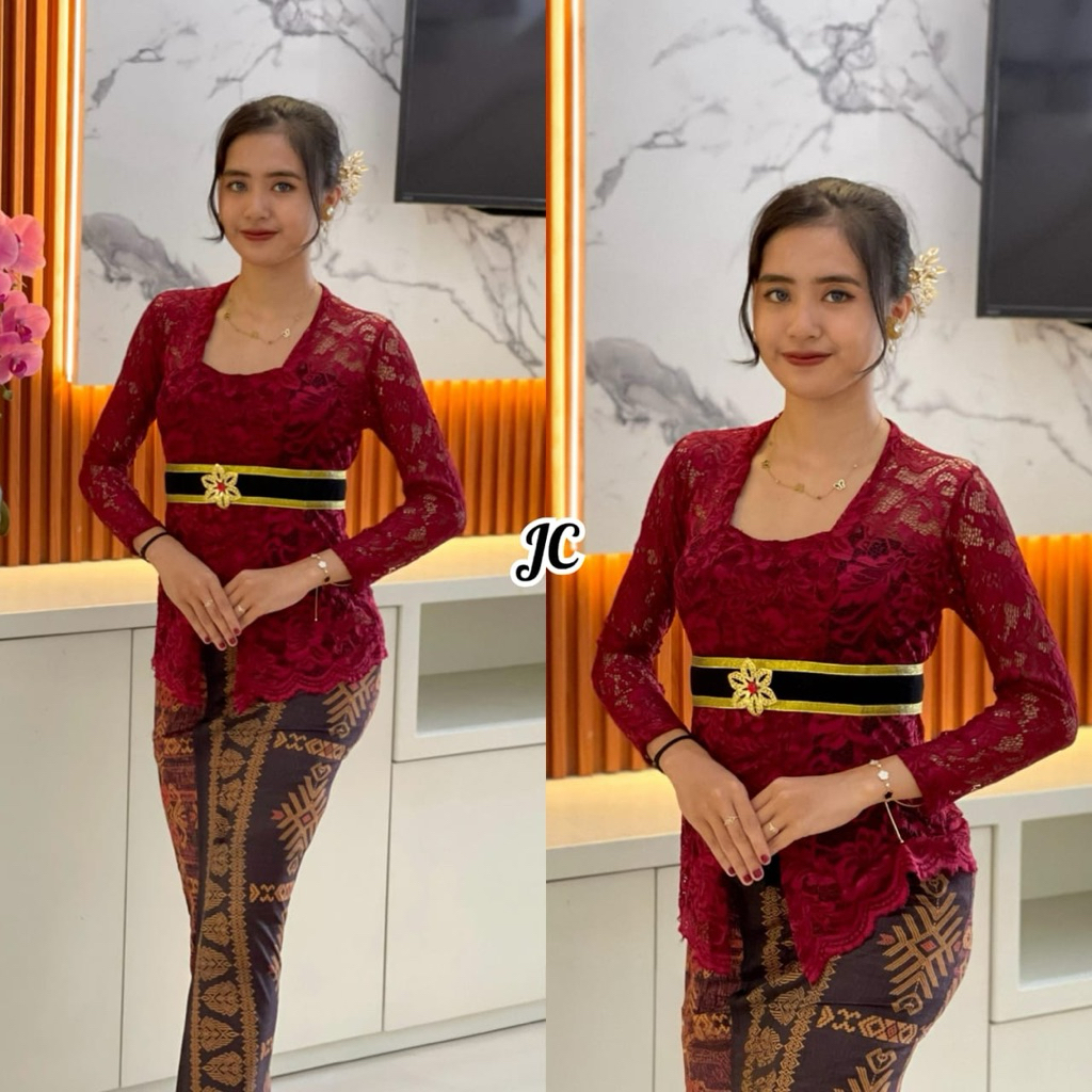 ONE SET KEBAYA SOFIA BROKAT kebaya kutu baru // Setelan kebaya brokat belt obi free bross // Atasan wanita tradisional k